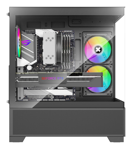 Verpackungsdaten | | Verpackungsbreite | 282 mm | | Verpackungstiefe | 532 mm | | Verpackungshöhe | 484 mm | | Paketgewicht | 8,09 kg | Stromversorgung | | Netzteil enthalten | Nein | | Unterstützte Stromversorgungs-Formfaktoren | ATX | Speichermedium | | Unterstützte Hard-Disk Drive Größen | 3.5 " | | SSD-Formfaktor | 2.5" | Lieferumfang | | Betriebsanleitung | Ja | Kühlung | | Installierte Lüfter seitlich | 2x 120 mm | | Anzahl unterstützter Seitenlüfter (max.) | 2 | | Durchmesser unterstützte Seitenlüfter | 120 mm | | Installierte Lüfter hinten | 1x 120 mm | | Anzahl der unterstützten hinteren Lüfter (max.) | 1 | | Durchmesser unterstützter Rückseitenlüfter | 120 mm | | Anzahl der unterstützten oberen Lüfter (max.) | 3 | | Unterstützte Lüfterdurchmesser (oben) | 120,140 mm | | Anzahl unterstützter unterer Lüfter (max.) | 3 | | Durchmesser unterstützte Unterlüfter | 120 mm | | Unterstützte Radiatorgrößen hinten | 120 mm | | Unterstützte Radiatorgrößen oben | 240,280,360 mm | | Unterstützung der Pulsweitenmodulation | Ja | Gewicht und Abmessungen | | Breite | 220 mm | | Tiefe | 421 mm | | Höhe | 490 mm | | Gewicht | 7,09 kg | Design | | Formfaktor | Midi Tower | | Typ(en) | PC | | Produktfarbe | Schwarz | | Unterstützte Motherboards Formfaktoren | ATX, micro ATX, Mini-ITX | | Anzahl der 3,5" Erweiterungseinschübe | 2 | | Anzahl der 5,25" Erweiterungseinschübe | 0 | | Material(ien) | SPCC, Gehärtetes Glas | | Anzahl der 2,5" Erweiterungseinschübe | 3 | | Anzahl der Erweiterungsslots | 7 | | Seitenfenster | Ja | | Geeignet für | Gaming | | Beleuchtung | Ja | | Farben der Beleuchtung | Multi | | Beleuchtungsort | Taschenlüfter | | Gehärtete(s) Glaspaneel(e) | Ja | | Anti-Staubfilter | Ja | | Verbessertes Kabelmanagement | Ja | | Reset-Knopf | Ja | | Ein-/Ausschalter | Ja | | RGB-Steuertaste | Ja | | Max CPU Kühler-Höhe | 17 cm | | Max Grafikkarten-Länge | 41 cm | | Maximum PSU Länge | 20 cm | Anschlüsse und Schnittstellen | | Anzahl USB 2.0 Anschlüsse | 2 | | USB 3.2 Gen 1 (3.1 Gen 1) Anzahl der Anschlüsse vom Typ A | 1 | | USB 3.2 Gen 2 (3.1 Gen 2) Anzahl der Anschlüsse vom Typ C | 0 | | USB 3.2 Gen 2 (3.1 Gen 2) Anzahl der Anschlüsse vom Typ A | 0 | | USB 3.2 Gen 2x2 Typ-C Anzahl Anschlüsse | 0 | | Kombinierter Kopfhörer-/Mikrofon-Anschluss | Ja |