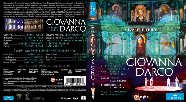 | Beschreibung: | With more than 50 years of experience as film director, Peter Greenaway (Nightwatching, Eisenstein in Guanajuato, The Cook, the Thief, His Wife & Her Lover) combines the worlds of film and opera at the Festival Verdi in Parma with an all new approach to Verdi's Giovanna d'Arco, staged and edited by himself and Saskia Boddeke. Turning the auditorium into part of the set, Greenaway includes the unique architecture of the Teatro Farnese into his staging. With the help of spectacular video and light installations, he creates a completely new opera experience, using a striking imagery that includes depictions of the Madonna, modern manga girls and the real faces of refugee children. "It is a thrilling moment when threads of light spread over the darkened arches during the overture, shaping the architecture and flooding the whole area with changing light patterns." (Daily Express), Runningtime: 00:00:00, Labelcode CMAJ745704BR |  | Darsteller: |