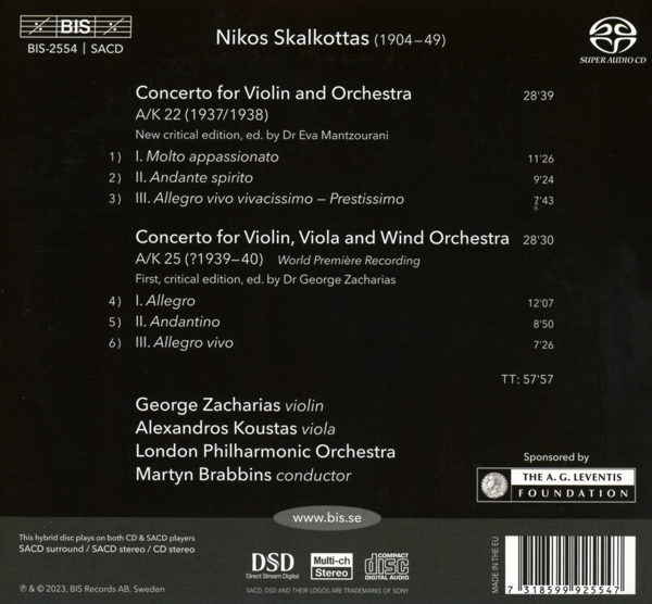 Composed By: Nikos Skalkottas, Conductor: Martyn Brabbins, Orchestra: London Philharmonic Orchestra, Viola: Alexandros Koustas, Violin: George Zacharias, Labelcode BIS2554SACD (BIS-2554)