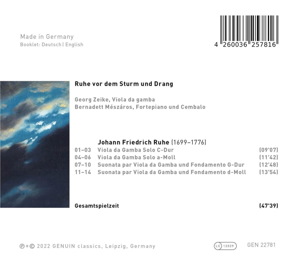 | Beschreibung: | Music that lies between the late Baroque and the beginning of the classical period: these are the four sonatas for viola da gamba and basso continuo by the Magdeburg Cathedral Kapellmeister Johann Friedrich Ruhe - a real discovery! Georg Zeike performs them on the viola da gamba together with Bernadett Mészáros on the harpsichord. The unique feature of this recording is the fortepiano, which had just been developed in Ruhe's time. How does the "old" viola da gamba harmonize with the two different keyboard instruments, the "old" and the "new"? An exciting juxtaposition! The two Leipzig artists have toured throughout Europe with leading early music ensembles and regularly worked as chamber music partners., Runningtime: 00:00:00, Composed By: Johann Friedrich Ruhe, Fortepiano, Harpsichord: Bernadette Mészáros, Viola da Gamba: Georg Zeike, Labelcode GENN22781.2 (GEN 22781) |