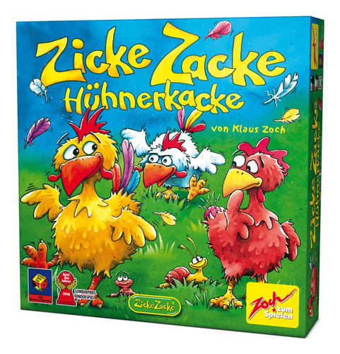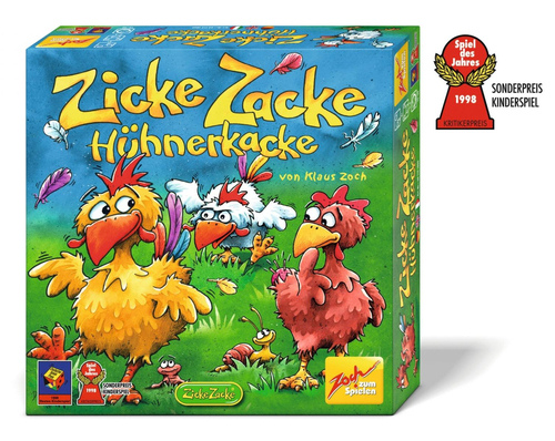 | | Beschreibung: | O-Titel: Zoch Zicke Zacke HühnerkackeTyp/Warengruppe: KINDERSPIELEHersteller-Nr.: 601121800Genre/Unterkategorie: Familienspiele, Noris Spiele, Kinderspiele, Gesellschaftsspiele, BrettspieleGewicht: 1186 gAbmasse: 7x30x30 cmAltersempfehlung ab: 4 Jahr(e)Altersempfehlung bis: 99 Jahr(e)Altersfreigabe: 3 Jahr(e)Spieleranzahl: 2 bis 4Spieldauer: 20 min.Beschreibung: Kinderspiel Zicke Zacke Hühnerkacke ist das preisgekrönte Gedächtnisspiel rund um den Hühnerhof. Ziel des Spiels ist es, sich mit den Federn der anderen Hühner zu schmücken. Man bewegt sich vorwärts, indem man das vor sich liegende Motiv im Hühnerhof in der Mitte aufdeckt. Gelingt das, darf man auf das nächste Plättchen springen und ist gleich wieder am Zug. Überholt ein Huhn ein anderes Huhn, darf es diesem alle Federn ausrupfen und sich selbst anstecken. Die rasante Hühnergedächtnisralley ist ein Klassiker, der nicht nur Kinder hellauf begeistert. Für 2-4 Spieler im Alter ab 4 Jahren. Material: 4 Holzhühner, 4 Holzschwanzfedern, 24 einförmige Wegplättchen, 12 achteckige HühnerhofplättchenZusatzbeschreibung: Kinderspiel Zicke Zacke Hühnerkack e ist das preisgekrönte Gedächtnisspiel rund um den Hühnerhof. Ziel de s Spiels ist es, sich mit den Federn der anderen Hühner zu schmücken. Man bewegt sich vorwärts, indem man das vor sich liegende Motiv im Hüh nerhof in der Mitte aufdeckt. Gelingt das, darf man auf das nächste Pl ättchen springen und ist gleich wieder am Zug. Überholt ein Huhn ein a nderWarnhinweis: Kinderspiel Zicke Zacke Hühnerkacke ist das preisgekrönte Gedächtnisspiel rund um den Hühnerhof. Ziel des Spiels ist es, sich mit den Federn der anderen Hühner zu schmücken. Man bewegt sich vorwärts, indem man das vor sich liegende Motiv im Hühnerhof in der Mitte aufdeckt. Gelingt das, darf man auf das nächste Plättchen springen und ist gleich wieder am Zug. Überholt ein Huhn ein anderes Huhn, darf es diesem alle Federn ausrupfen und sich selbst anstecken. Die rasante Hühnergedächtnisralley ist ein Klassiker, der nicht nur Kinder hellauf begeistert. Für 2-4 Spieler im Alter ab 4 Jahren. Material: 4 Holzhühner, 4 Holzschwanzfedern, 24 einförmige Wegplättchen, 12 achteckige HühnerhofplättchenArtikel-Serie/Marke: ZochBatterie erforderlich: NeinGrüner Punkt: JaKennzeichen ICTI Care / BCSI: JaCE Kennzeichnung: JaCE Richtlinie: 2009/48/EUHerkunft: DEHersteller: Simba Dickie Vertriebs GmbHSonderpreis Kinderspiel 1998-ab 4 Jahren-2 - 4 SpielerManufacturer-Nr.: 601121800Wer sich mit fremden Federn schmückt, gewinnt! Der Titel des Spiels mag für erwachsene Ohren seltsam klingen, ist aber schnell erklärt: Kinder gaben dieser witzigen Memory-Variante, die als rasantes Wettrennen einer bunten Hühnerschar gestaltet ist, den Namen Zicke Zacke Hühnerkacke. Ziel des Spiels ist es, den Mitspielern bzw. deren Hühnern die Schwanzfedern zu rupfen. Aber das ist gar nicht so leicht - zumindest wenn man älter als neun Jahre ist. Die Packung enthält neben der Spielanleitung 24 eiförmige Wegplättchen und 12 achteckige Hühnerhofplättchen sowie vier liebevoll gestaltete Holzhühner inklusive Schwanzfedern, bei denen es sich um farbig markierte Holzstäbchen handelt. Die Hühnerhofplättchen werden verdeckt auf dem Tisch ausgelegt und gemischt. Um sie herum werden kreisförmig die aufgedeckten Wegplättchen angeordnet. Die witzigen Bildmotive auf den Hühnerhofplättchen sind mit denen auf den Wegplättchen identisch. Bei den Wegplättchen sind sie allerdings doppelt vorhanden. Ein Gedächtnisspiel für die ganze Familie"Zoch 21800 - Zicke Zacke Hühnerkacke" von Zicke aus der Kategorie Babyspielzeug Das Produkt hat die Abmasse: Höhe HÖHE x Breite BREITE x Tiefe 72 mm. Das Produkt ist 297 x 72 x 295 mm groß (BxTxH). |  | | Mindestalter: |