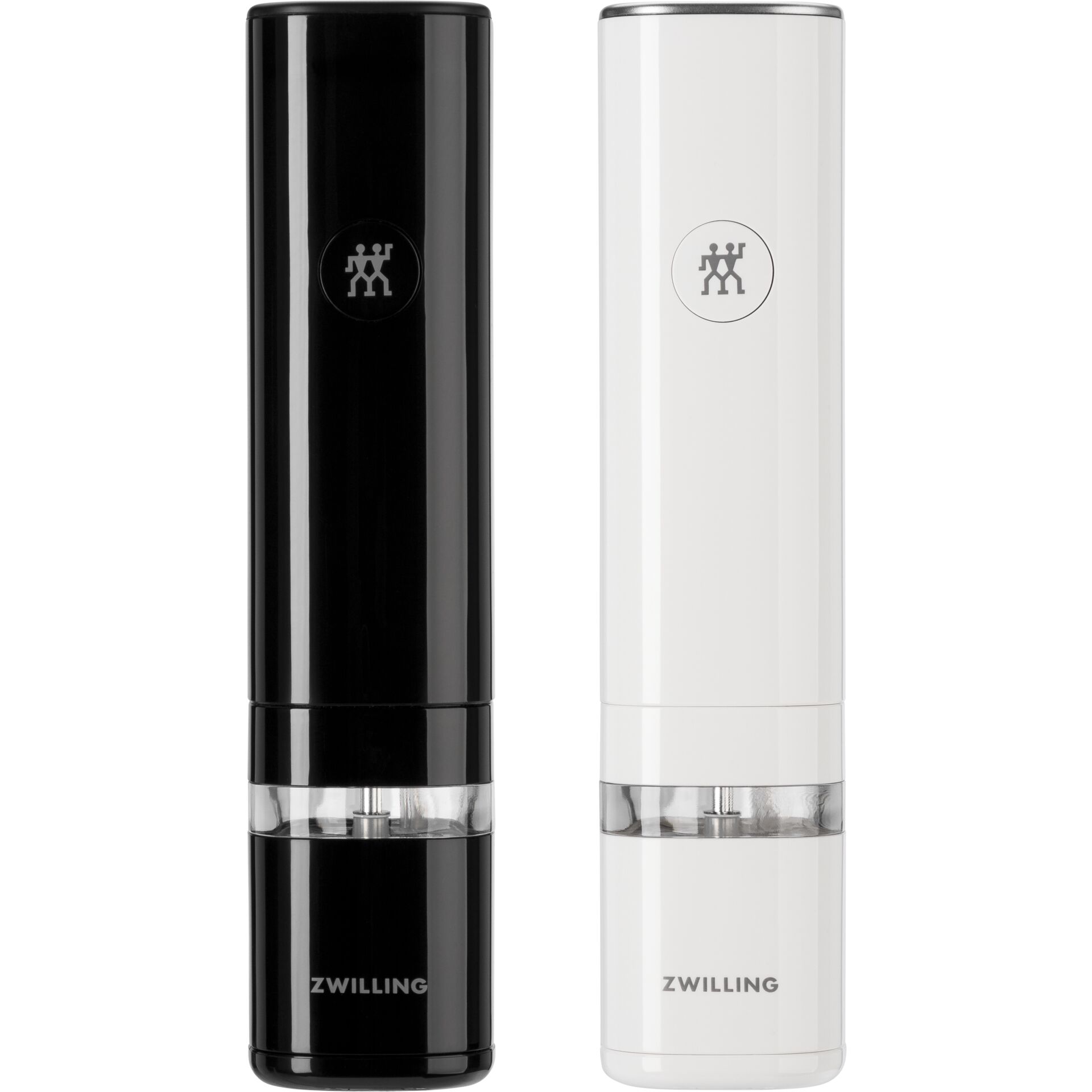 Beschreibung:Jetzt ist Mahl-Zeit - und das gleich doppelt: mit den zwei ZWILLING ENFINIGY Gewürzmühlen in Schwarz und Weiß mahlst du jetzt mühelos Salz und Pfeffer für deine frischen Gerichte. Ermöglicht wird das durch das hochwertige Keramikmahlwerk, das in der Salz- und Pfeffermühle steckt. Das ist nicht nur besonders hart und verschleißfrei, es setzt beim Mahlen auch die Aromen der Gewürze frei und sorgt so für besonderen Genuss. Den Mahlgrad der elektrischen Salz- und Pfeffermühle bestimmst du dabei übrigens selbst: von grob bis fein, ganz nach deinem Geschmack. Angetrieben wird die Salzmühle von einem leistungsstarken Motor, der seinen Strom von einem wiederaufladbaren Li-Ionen-Akku bekommt. Der hat eine große Kapazität und ermöglicht dir viele Mahlvorgänge, bevor du ihn einfach per Kabel wieder auflädst. Batterien musst du dadruch keine mehr wechseln. Das freut deinen Geldbeutel ebenso sehr wie die Umwelt. Auch die weiteren Details der Gewürzmühlen wissen zu überzeugen: Das umlaufende Sichtfenster